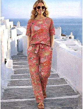 Per donna Set di biancheria in cotone Manica Corta Girocollo Grafico Astratto Elegante Bohemien Attivo Casuale Quotidiano Blu Rosso Viola Estate Vestibilità regolare