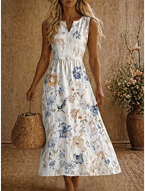 Per donna Abito Midi Abito Bianco Abito con occhielli Moda Moderno Spiaggia Vacanza Ferie Vestibilità regolare Floreale Manica Corta Scollo a V Blu Nero Bianco Verde chiaro Estate Primavera