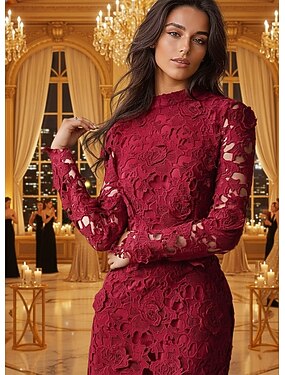 Tubino Colonna Lunghezza alla caviglia Abiti da Ballo Abito da Sera Da principessa Abito formale Elegante Scintillante Stile Celebrità Manica Lunga Collo Alto Festa in giardino Matrimonio Pizzo con