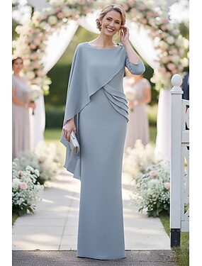 Tubino Colonna Abito Lunghezza al pavimento Abito da invitata a nozze Abito Formale Abito da sera Abito da cerimonia per signora Manica 3/4 Girocollo Elegante Formale Raso con Bottoni Tinta unita