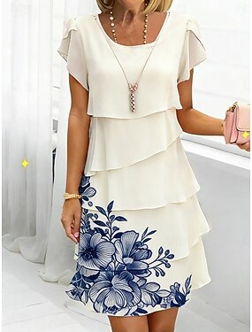 Tubino Colonna Lunghezza al ginocchio Abito da Ballo Abito da ritorno a casa Abito da invitata a nozze Abiti per invitati a matrimoni Elegante Quotidiano Manica Corta Girocollo Formale Ospite di nozze