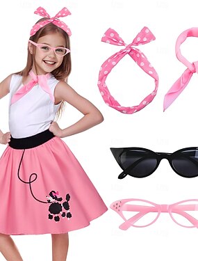 Retrò Vintage Anni 1950 Abiti Grease Vestito Abiti Gonne a barboncino Stampa Costume Ragazze Carnevale Mascherata Performance Feste Bambini Vestito