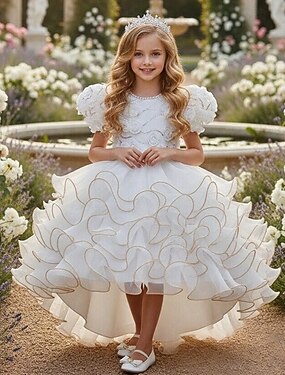 Abito da damigella d'onore bambina Ragazze Abito Abito formale Abito da principessa Abito per la Prima Comunione Vestito da Festa Performance Matrimonio Feste Principessa Dolce Pasqua Rete Senza