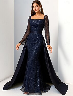 Abito da cerimonia lungo A-Line abito da matrimonio per ospiti abiti formali abito da cerimonia per la madre della sposa con maniche lunghe scollo quadrato elegante vintage lussuoso formale con