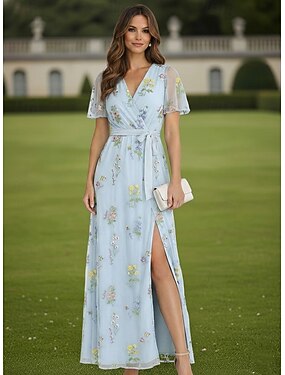 Linea ad A Abito Lunghezza al pavimento Lunghezza alla caviglia Abito da Cocktail Abito da invitata a nozze Abito da cerimonia per signora Manica Corta Scollo a V Elegante Casual Formale Ospite di