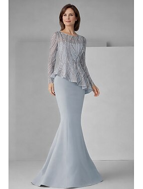 Sirena Tromba Lunghezza al pavimento Perline ricamate Abito da invitata a nozze Abito Formale Abito da cerimonia per signora Manica Lunga Scollo a Barca Elegante Formale Ospite di nozze Crepe