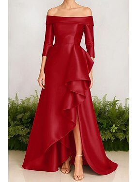 Linea ad A Lunghezza alla caviglia Vestito da Festa Abito da Cocktail Abito da invitata a nozze Abito da cerimonia per signora Manica Corta Monospalla Elegante Vintage Formale Jacquard con