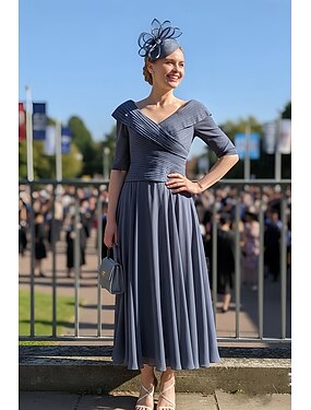 Set di abiti da invitata al matrimonio di lunghezza tè Abito per la madre della sposa Abito a maniche 3/4 scollatura quadrata elegante semplice per invitata al matrimonio in tinta unita