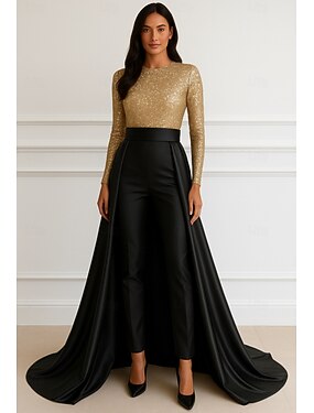 Sirena Tromba Lunghezza al pavimento Abito da Sera Abito da ballo con sopragonna Abito formale Elegante Scintillante Stile Celebrità Manica Lunga Girocollo Festa in giardino Matrimonio Raso