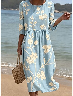 Per donna Abito Midi Vestito T-Shirt Abito a trapezio Abito Estivo Vacanza Casual Spiaggia Vestibilità regolare Floreale Grafico Manica Corta Scollo a V Blu Viola Verde Beige Estate Primavera