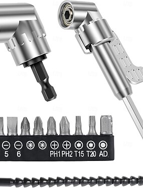 Set di 4 adattatori per trapano ad angolo retto di 105 gradi, avvitatore a impulsi e bussola magnetica per cacciavite, utensile angolare, mozzo a vite (corto + lungo) e punta di prolunga ad angolo