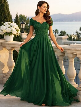 Abito a linea A lunghezza fino al pavimento abito per invitata a un matrimonio abiti formali abito da sera abito per madre della sposa maniche corte scollo a cuore elegante formale invitata a un