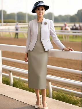 Due Pezzi Tubino Colonna Set di Abiti Lunghezza Tè Abito da invitata a nozze Abito da cerimonia per signora Senza Maniche Girocollo Elegante Su misura Formale Serata Formale Ricevimento di matrimonio
