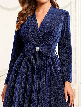 Abito lungo A-Line per ospiti di matrimonio abiti formali da sera abito da cerimonia per la madre della sposa con maniche lunghe scollo a V elegante vintage lussuoso con pieghe paillettes