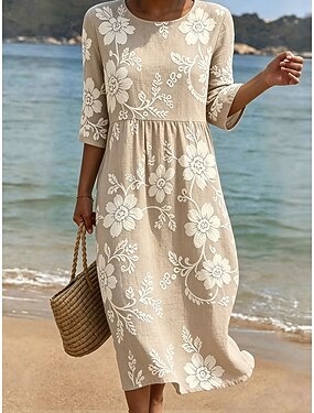 Per donna Abito Midi Vestito Estivo Abito Estivo Vacanza Casual Boho Spiaggia Ferie Vestibilità regolare Floreale Grafico Manica 3/4 Girocollo Blu Rosa Viola Verde Estate Primavera
