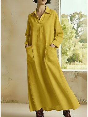 Per donna Abito maxi Finto cotone e lino Abito a Tubino Vestito a caftano Vestito Casual Casual Quotidiano Casual Stile da Strada Quotidiano All'aperto Vacanza Vestibilità comoda Semplice Manica Lunga