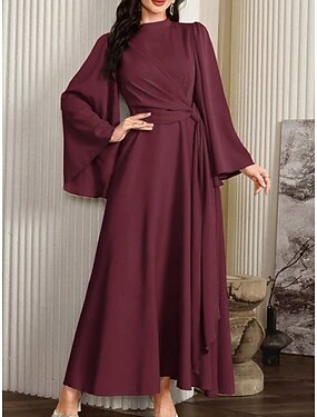 Per donna Abito Midi Vestito Casual Abito a Portafoglio Abito aderente Elegante Moda Moderno All'aperto Vacanza Uscire Vestibilità regolare Semplice Manica Lunga Girocollo Nero Rosso Viola Cachi