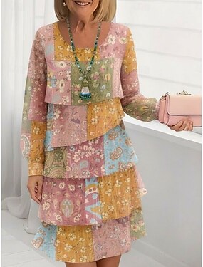 Per donna Mini Abito Abito a Tubino Vestito Casual Vestito in Chiffon Elegante Moda Moderno Quotidiano All'aperto Vacanza Vestibilità regolare Floreale Manica Lunga Girocollo Rosa Estate Primavera