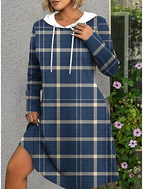 Per donna Mini Abito Abito con Cappuccio Vestito Casual Elegante Moda Moderno Quotidiano All'aperto Weekend Vestibilità regolare Plaid Manica Lunga Con Cappuccio Blu Viola Verde Primavera Autunno