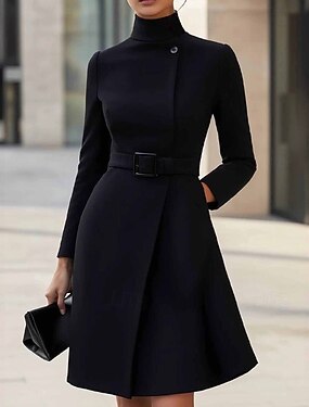 Per donna Mini Abito Tubino Abito Formale Elegante Moda Moderno All'aperto Ufficio Vestibilità regolare Semplice Manica Lunga Collo alla coreana Nero Autunno Inverno