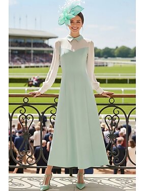 Linea ad A Lunghezza Tè Abito Derby Abito da cerimonia per signora Manica Lunga Colletto a Camicia Elegante Vintage Semplice Formale Derby del Kentucky Taffetà con Fiocco/Fiocchi
