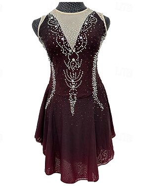 Abito da pattinaggio artistico Per donna Pattinaggio sul ghiaccio Vestito Marrone Patchwork Alta elasticità Allenamento Competizione Vestiti da pattinaggio sul ghiaccio Classico Cristallo / Strass