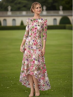 Linea ad A Abito Abito alto-basso Lunghezza alla caviglia Abito da Cocktail Abito da cerimonia per signora Manica 3/4 Scollo a Barca Elegante Semplice Formale Ospite di nozze Semi-Formale con Volant