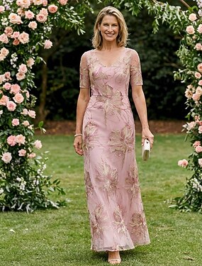 Linea ad A Abito Lunghezza alla caviglia Lunghezza Tè Vestito maxi Vestito da Festa Abito da Cocktail Abito da cerimonia per signora Manica Corta Mezza Manica Girocollo Scollo Illusione Elegante