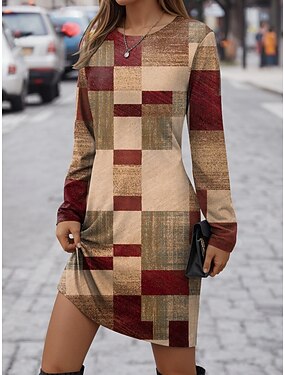 Per donna Mini Abito Vestito T-Shirt Abito a Tubino Casual Quotidiano Vestibilità regolare Grafico Geometrico Manica Lunga Girocollo Rosso Blu Viola Marrone Primavera Autunno Inverno