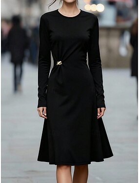 Per donna Abito al ginocchio Abito nero Vestito Casual Vestito T-Shirt Elegante Moda Moderno All'aperto Vacanza Uscire Taglia piccola Semplice Manica Lunga Girocollo Nero Primavera Autunno