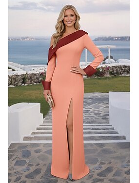 Tubino Colonna Lunghezza al pavimento Abito da invitata a nozze Abito Formale Abito da sera Abiti da Ballo Elegante Manica Lunga Monospalla Balli di fine anno Formale Raso Tessuto Elasticizzato con