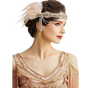 Vintage Anni 1920 Il grande Gatsby Fascia Flapper Il grande Gatsby Invitato al matrimonio Costume Per donna Halloween Carnevale Mascherata Halloween Ricevimento di nozze Addio al Nubilato Fascia