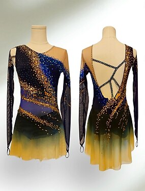 Abito da pattinaggio artistico Per donna Ragazze Pattinaggio sul ghiaccio Vestito Nero / giallo Patchwork Foro per il pollice Spandex Rete Alta elasticità Allenamento Competizione Vestiti da