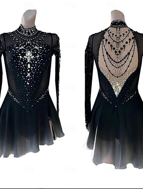 Abito da pattinaggio artistico Per donna Ragazze Pattinaggio sul ghiaccio Vestito Nero Patchwork Schiena aperta Rete Alta elasticità Allenamento Competizione Vestiti da pattinaggio sul ghiaccio