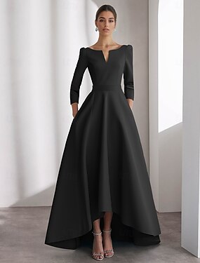 Linea ad A Asimmetrico Lunghezza alla caviglia Abito Formale Abito a trapezio Abiti da Cocktail Elegante Vintage Manica Lunga Scollo a V Matrimonio Formale Raso con Tasca
