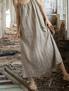 abito da donna in finto cotone e lino, lunghezza al ginocchio, prendisole, abito casual, abito sottoveste, moda, basic, moderno, quotidiano, vacanza, uscita, vestibilità ampia, tinta unita, senza