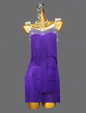 Vestito da ballo latino con nappa di strass, da donna, per spettacoli, rumba, chacha, salsa, senza maniche