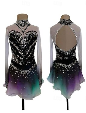 Vestito da pattinaggio artistico Per donna Da ragazza Pattinaggio sul ghiaccio Vestiti Nero Foro per pollice tintura sfumata Elevata elasticità Professionale Competizione Vestiti da pattinaggio sul