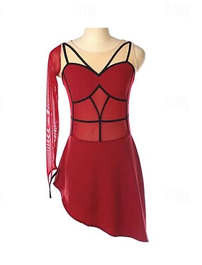 Vestito da pattinaggio artistico Per donna Da ragazza Pattinaggio sul ghiaccio Vestiti Borgogna Collage Scollatura posteriore Retato Elastene Elasticizzato Addestramento Da allenamento Professionale