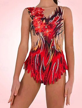 Vestito da pattinaggio artistico Per donna Da ragazza Pattinaggio sul ghiaccio Vestiti Rosso / giallo Collage Foro per pollice Retato Elastene Elasticizzato Addestramento Da allenamento Professionale