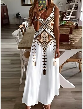 Per donna Abito Midi Abito a trapezio Abito aderente e svasato Vacanza Casual Boho Quotidiano Feste Uscire Vestibilità regolare Floreale Grafico Manica Lunga Girocollo Bianco Rosso Beige Estate