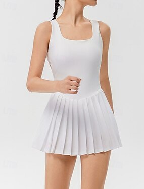 Per donna Tinta unita Abito da tennis con pantaloncini e reggiseno incorporati Abito sportivo Senza Maniche Pieghettato Tennis Golf Pickleball Collo a U Vestito Nero Bianco Giallo Spandex