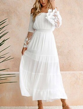 Per donna Abito Lungo Maxi Abito Abito in Pizzo Abito Bianco Elegante Moda Moderno Quotidiano Vacanza Uscire Vestibilità regolare Semplice Manica Lunga Senza Spalle Nero Bianco Primavera Autunno