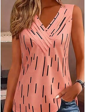 Per donna Blusa Pieghettato Stampato Grafico Geometrico Casual Senza Maniche Scollo a V Top Regolari Quotidiano Blu Bianco Rosa Arancione Verde Estate Primavera