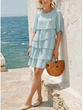 Per donna Mini Abito Vestito in Chiffon Abito a Strati Moda Moderno All'aperto Ferie Uscire Vestibilità regolare Semplice Mezza Manica Girocollo Blu Nero Rosa Primavera Autunno