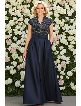 Per donna Abito da smoking Linea ad A Matrimonio Formale Ospite di nozze Strass Elegante Vintage Manica 3/4 Lunghezza al pavimento Revers dentellati Colletto a bavero Cerniera