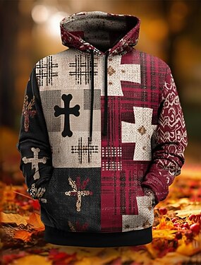 Per uomo Bandiera Americana Croce Felpa con Cappuccio Felpa Moda Quadrettato Casual Manica Lunga Girocollo Con Cappuccio All'aperto Abbigliamento casual alla moda Ufficio Rosso Marrone Coulisse