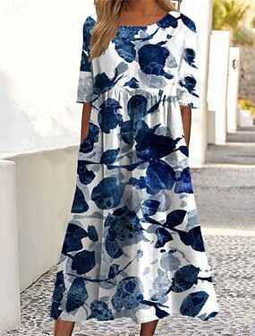 Per donna Abito Midi Vestito Casual Abito Stampato Moda Moderno Quotidiano Spiaggia Weekend Vestibilità regolare Floreale Manica 3/4 Girocollo Blu Verde chiaro Viola Verde Primavera Autunno
