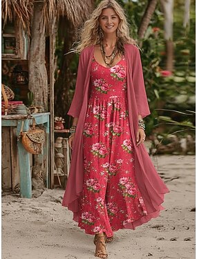 Per donna Insieme del vestito Abito a trapezio Vacanza Boho Grafico Paisley Stratificato Stampato Abito maxi Manica 3/4 Scollo a V Quotidiano Spiaggia Rosa scuro Marrone chiaro Blu scuro Estate