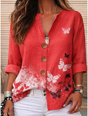 Per donna Maglietta Camicia di cotone Arricciato Semplice Vintage Moda Elegante Manica Corta Scollo a V Top Regolari Casuale Quotidiano Uscire Rosa + arancio Viola / Blu Blu + rosa Blu / beige Blu